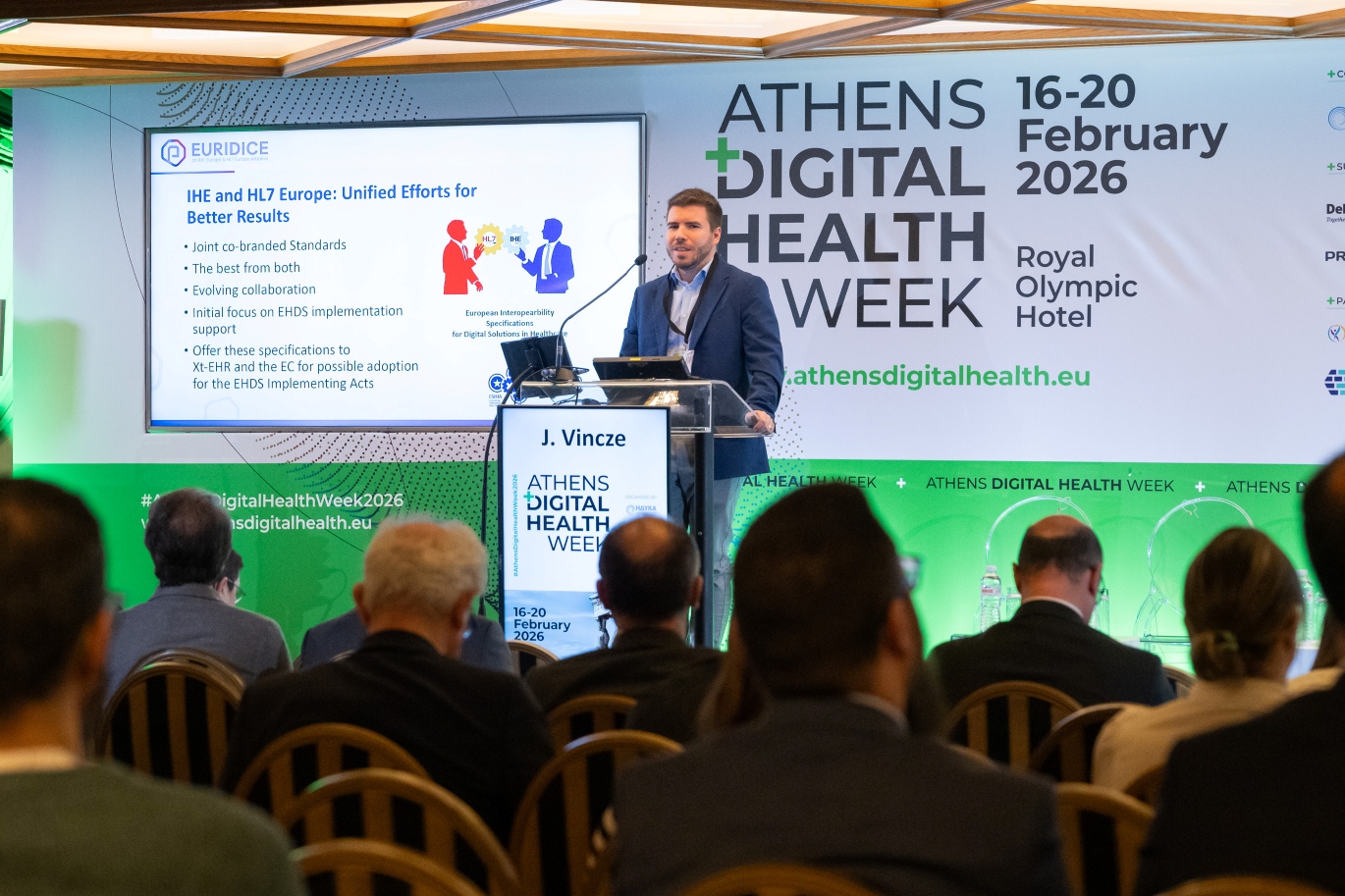 EURIDICE, a joint initiative of HL7 Europe and IHE-Europe, was presented as a practical enabler of the European Health Data Space (EHDS). Moderated by Jan Hulek, the session showed how SDOs translate EHDS policy into implementable and testable specifications.
